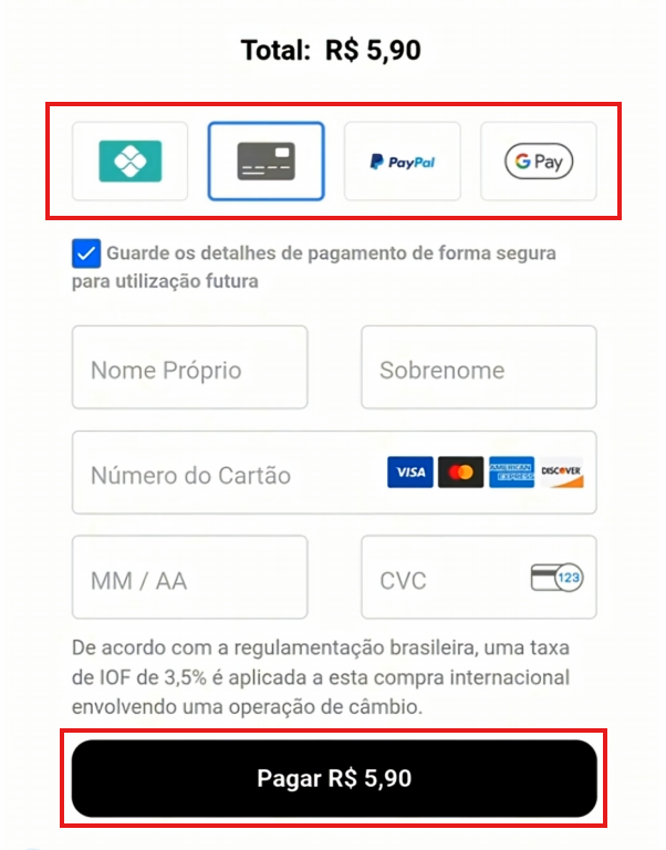 - Selecione o método de pagamento