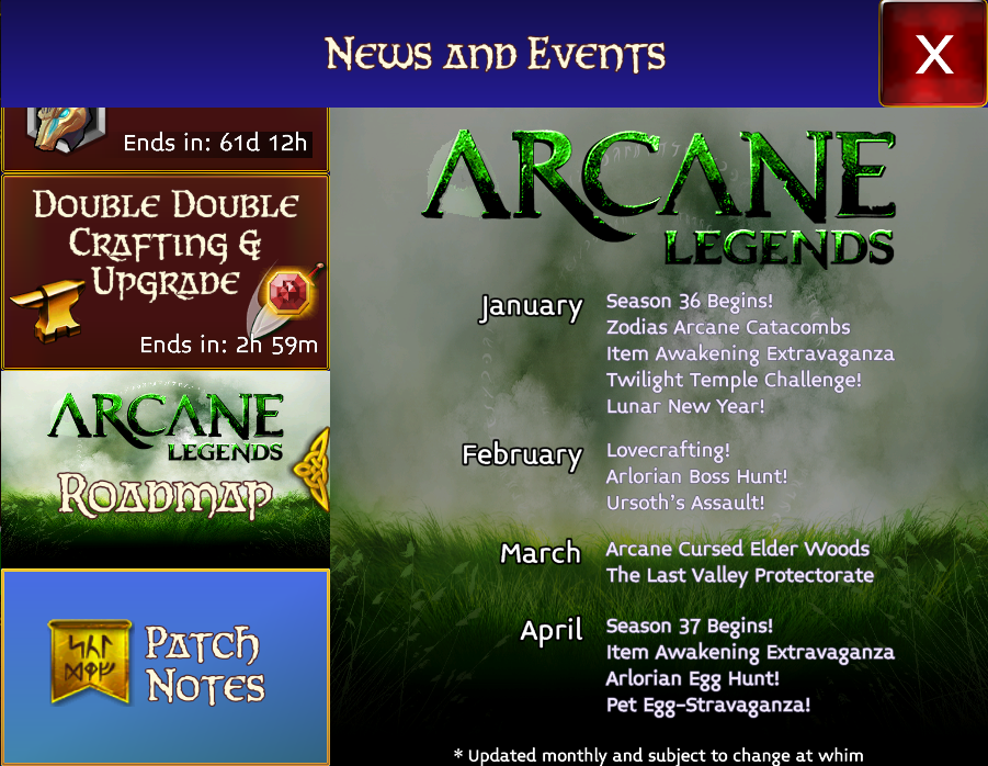 - Role até o final e clique em “Arcane Legends Roadmap”.