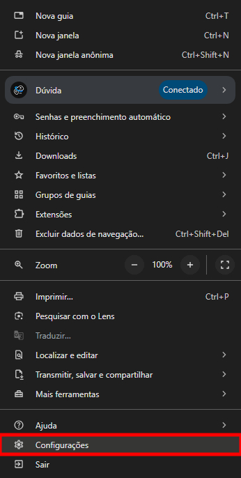 - Clique nos três pontinhos no canto superior direito e vá em Configurações.