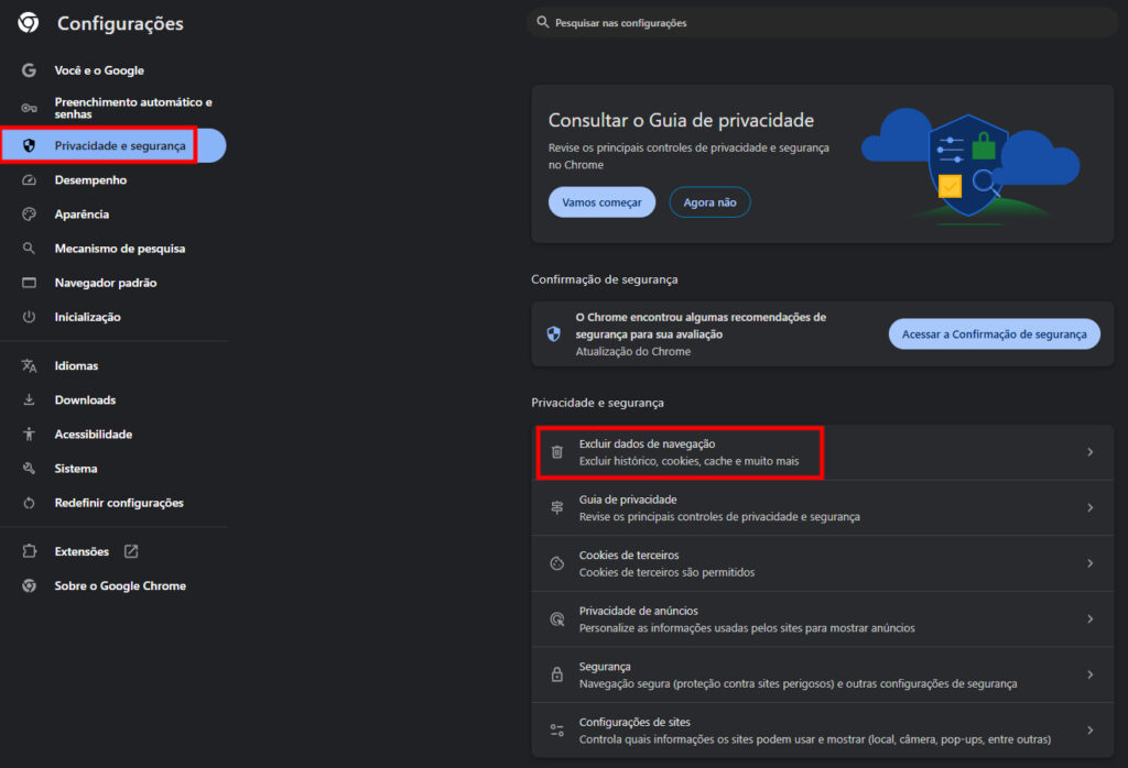 ✅ Solução 2: Limpar Cookies e Dados do Navegador