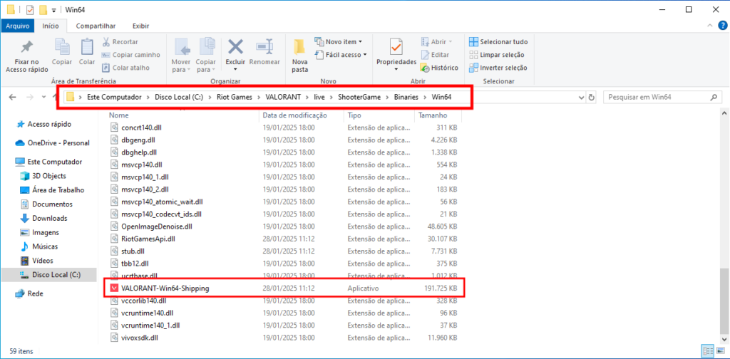 - Disco Local C: > Riot Games > Valorant > live > ShooterGame > Binaries > Win64.