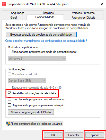 Alterar as configurações de compatibilidade do Valorant pode resolver erros de execução.