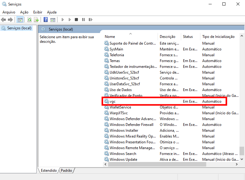 ✅ Solução 1: Ativar o serviço “vgc” no Windows