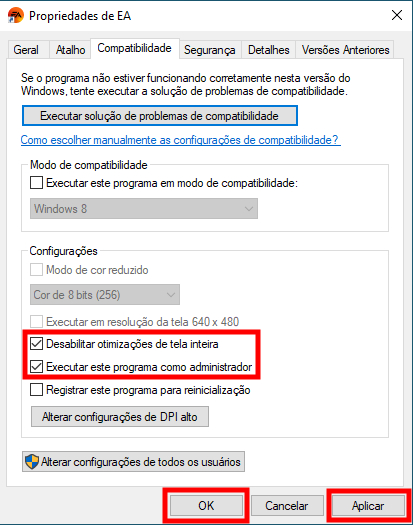 Alterar as opções de compatibilidade pode resolver conflitos com o sistema operacional: