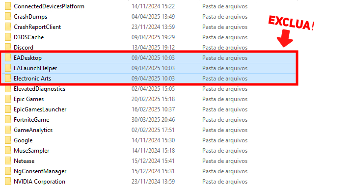 Arquivos corrompidos podem impedir que a EA App funcione corretamente. Para excluir essas pastas: